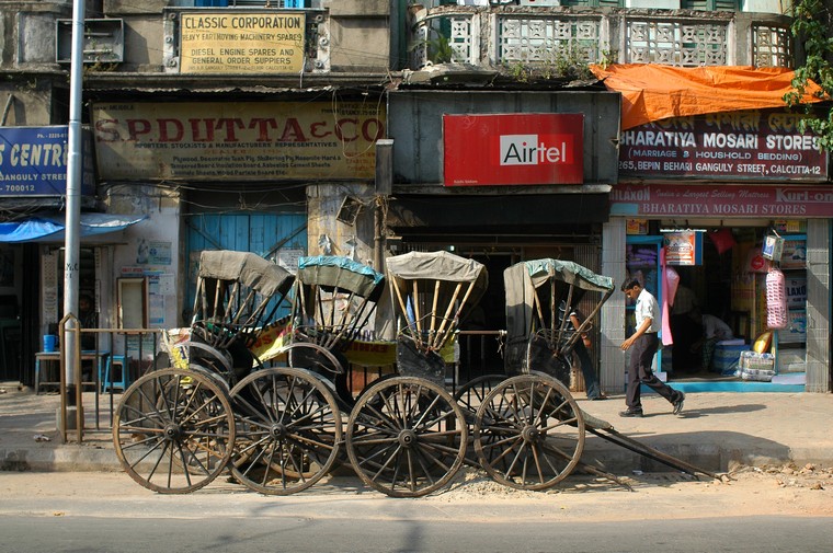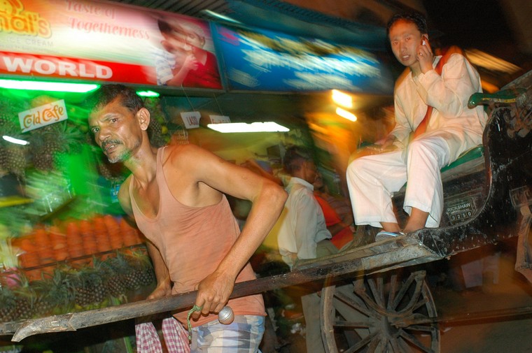 Jeszcze tylko rano przechadzka po zatloczonych okolicach ulicy Rabindra Sarani i przejazdzka riksza ciagnieta przez idacego/biegnacego kolesia. Dziwne uczucie, nawet sie nie targowalem, niech cos ma od bialasa