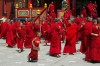 W skrocie cala mantra wyglada mniej wiecej tak - mmmm mmmm mmmm mmmm (tzn. oni tam nuca jakies slowa), tak z 15-20 minut albo i wiecej, potem traby, potem mmmm mmmm mmmm mmmm, potem traby, potem zarcie, w czasie ktorego niektorzy tylko robia mmmm, bo reszta je, potem cisza, potem mmmm, potem cisza, potem mmmm, potem gong i wszyscy wybiegaja na kilkuminutowa przerwe. Potem jeszcze kilka gongow i wszyscy wracaja do srodka. Wsrod innych punktow programu jest niesienie jakichs darow, rozdawanie bodajze 100-rupiowych banknotow wszystkim mnichom i pewnie inne niespodzianki, ktorych nie mialem okazji obejrzec.