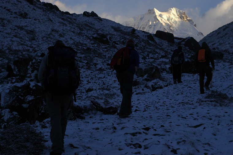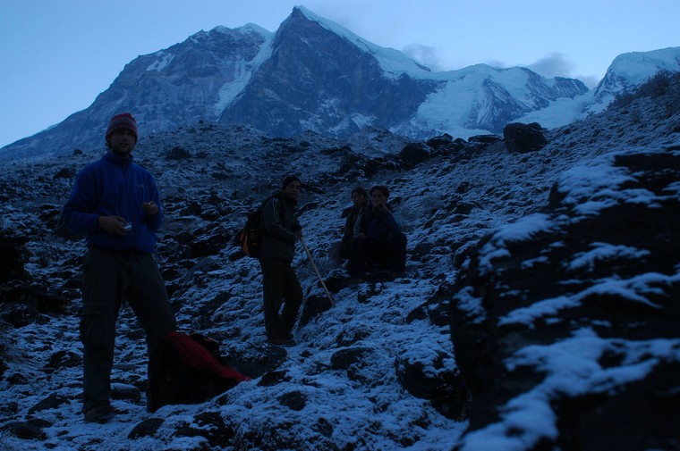 Godz. 3:30 rano - ruszamy zdobywac Gochea La. Godz. 7:30 po bardzo ciekawej, choc meczacej trasie jestesmy na miejscu pobijajac rekord swiata. Gdy schodzimy, niektorzy calyca czas drepcza pod gorke. Niektorzy wymiekli gdzies po drodze.