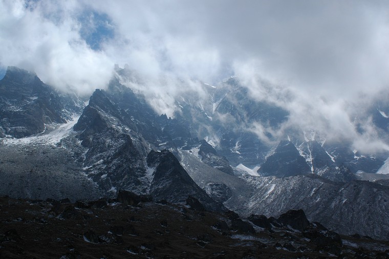 Kangczendzonge srednio widac, bo jest lekko zachmurzona, ale widok na pozostale gorki jest primo sorto. W sumie number one to Pandim, cos okolo 6000m, widac go z kazdego miejsca duzo lepiej niz Kangczendzonge.