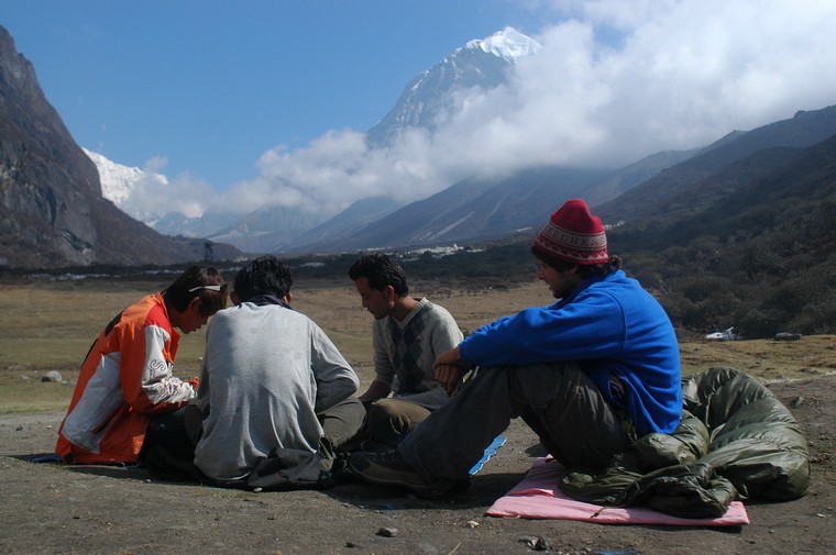 W koncu ruszamy i pol godzinie jestesmy w Kukchurung, gdzie znowu grzejemy lapy przy ognisku. Gdzies w miedzyczasie gramy w karty, niektorzy drzemia. Ogolnie bardzo spokojny dzien w ramach odpoczynku przed dwudniowym powrotem do Yuksom.