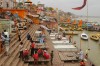 Wpadam tu zeby powtorzyc co fotki w miare mozliwosci a tu kupa, bo mother ganga troche sie podniosla i zalala polowe ghatow. Impreza z dymiacymi swieczkami jest przesunieta o 20 metrow, nie da sie juz przespacerowac od pierwszego do ostatniego ghatu wzdluz rzeki, trzeba co jakis czas wspinac sie schodkami na gore, kawalek przejsc starym miastem i znowu wrocic na dol. A zeby bylo ciekawiej to dzisiaj z powodu deszczu Luxa Road (glowna ulica prowadzaca do ghatow) zamienila sie w Luxa River z woda po kolana.