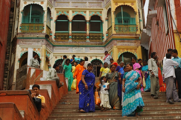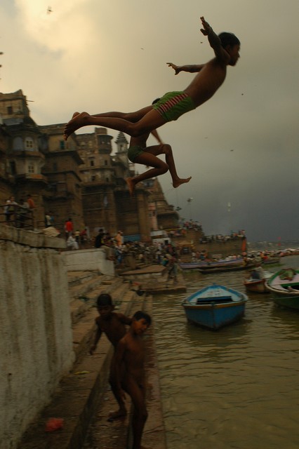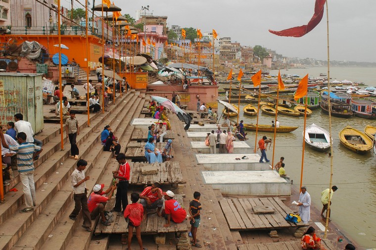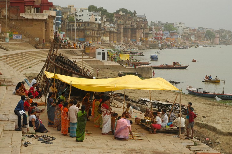 Wieczorem, zdaje sie, ze jak kazdego dnia, rozpoczyma sie jakas religijna impreza (a wlasciwie dwie konkurujace ze soba na sasiednich ghatach). Zebrani na schodkach ludzie ogladaja machanie swieczkami w te i w tamte przy muzyczce na zywo, a po niecalej godzinie nastepuje zbiorka kasy, ogloszenia parafialne i ghaty powoli pustoszeja po tym jak wiekszosc ludzi udaje sie do domow. Albo na zakupy na uliczke prowadzaca do rzeki wyglajaca jak Krupowki w szycie.